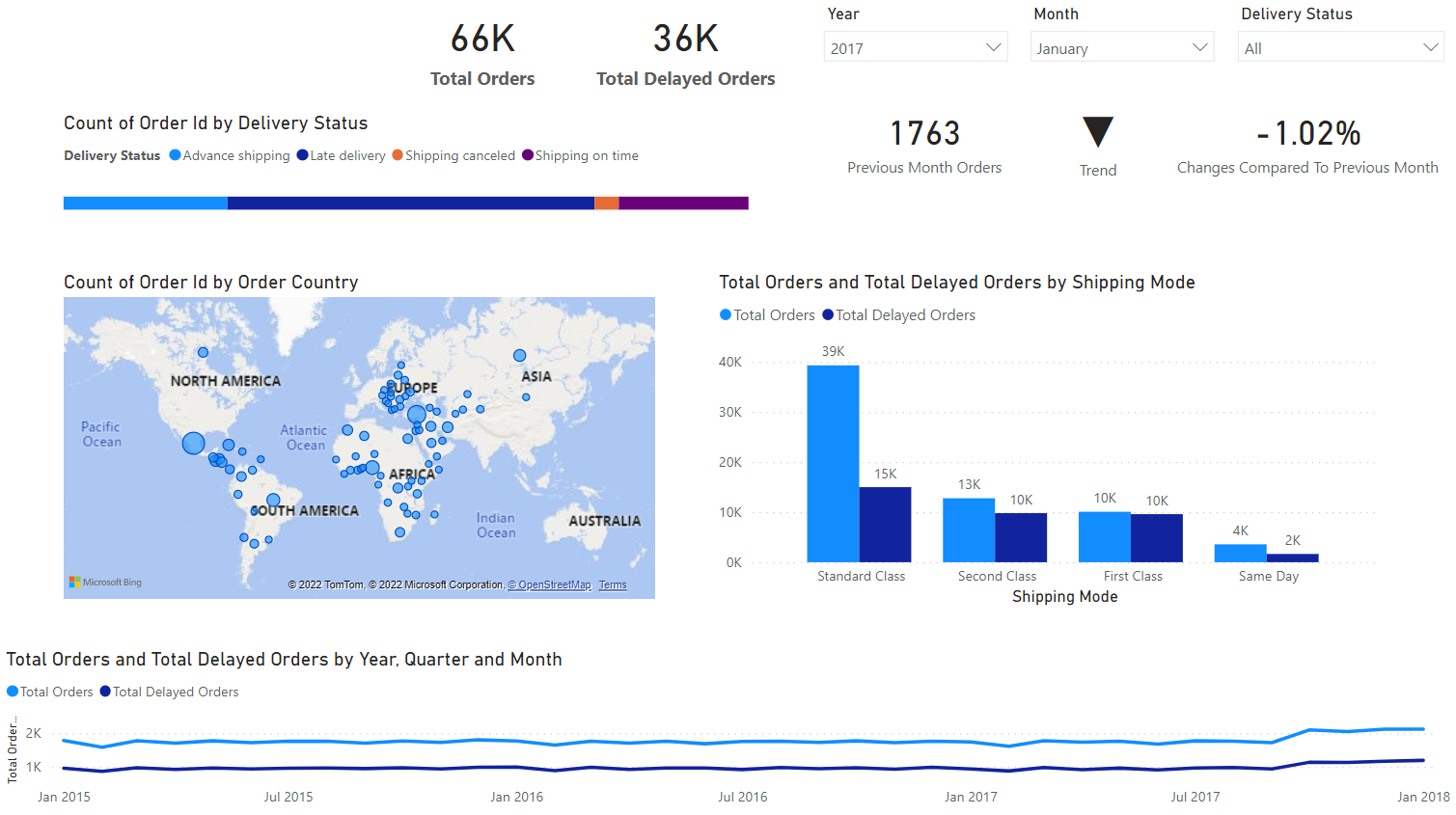 - Built supply chain report by looking into its delivery status, shipping mode and delayed orders status